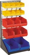 Similar to a free standing rack by mobile. Fitted with four 5" castors to the base which supports double sided Louvre Panels. Available in one height and two widths.