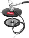 An easy to operate high pressure manual greasing system that is used to provide volume greasing where power is not available. Used for clean greasing of machinery, equipment and vehicles using grease up to and including NLGI 2. The pump has steel construction with aluminium cast head and solid steel pumping chamber. Complete with drum cover, follower plate, 48" (1220mm) flexible grease hose fitted with professsional 4-jaw coupler. For use with 12.5kg grease pails. Pump develops 3500psi (240Bar) and delivers 1.25gms per stroke (1.2oz per 28 strokes). Weight 4.8kg.