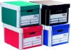 Extra strong offering maximum strength, durability and stacking performance. Triple wall construction on end panels, double wall on side. Dust cover lid. Tote handles for easy transportation. Holds A4 and foolscap files. Available in Woodgrain, Red/White and Blue/White. Packs of 10. Dimensions: (H)330 x (W)254 x (H)381mm.