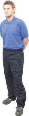 To allow the trousers to put on or removed whilst wearing shoes/boots each trouser leg has 1/3 length leg zips. Elasticated waistband with belt loops. Zip fly with double press-stud fasteners.
