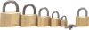 Laminated steel, nickel plated body and hardened steel shackle and a double locking mechanism. Resettable combination type padlock, available with either 4 number tumbler giving 10,000 combinations or a 3 number tumbler giving 1,000 combinations. For indoor and outdoor use on minimum to medium security items.