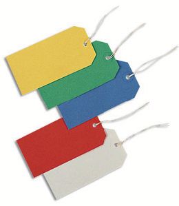 For increased labelling impact use coloured tags. High quality tags in popular colours. Made from 100% recycled board. Strung through holes reinforced with washers for extra strength. Supplied in boxes of 250. Price per box.