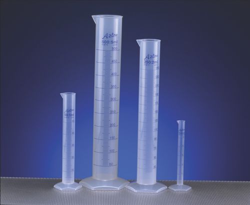 Clear, pin sharp blue graduations. Conforms to class B tolerances. Ultra clear polypropylene, with good chemical resistance. Large pouring spout for easy dispensing. Stable hexagonal bases with non slip anti-suction feature. Easy to read as liquids have virtually no meniscus in plastic cylinders.