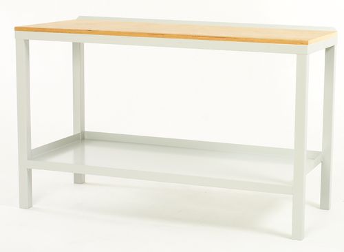 Fully welded static benches available - delivered ready to use. Choice of regular 2mm steel plate worktop or 20mm Beech layered worktop. Long life epoxy powder coat. Heavy duty steel framework with base shelf. All units are 600mm deep and 910mm high.