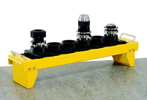 Tool carrier blocks offer a new, flexible method of storing CNC tooling. Individual tool pots simply clip into the carrier block. Specify the type of tooling and then add the required amount of storage pots to the carrier block. Tool carrier blocks may be used in conjunction with trolleys, cupboards or freestanding on a bench top. Supplied in yellow RAL1023 only.