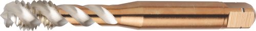 For blind holes. Taper lead to DIN form C. Tapping tolerance to 6H. Max depth 2.5xD. Helix angle 48°.