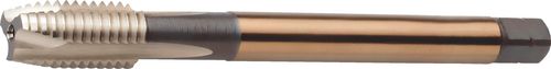 Dormer Spiral Point Metric Machine Taps for through holes. With gold finish with bright flutes.