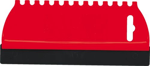 Non-scratch plastic spreader. The grooved edge ensures that the adhesive is evenly spread. The flexible edge is suitable for removing excess grout.