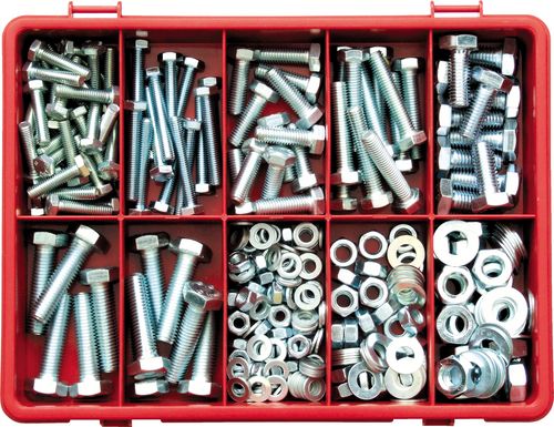 Setscrews: 1/4 x 3/4, 1/4 x 1, 5/16 x 1, 5/16 x 1 1/4, 3/8 x 1, 3/8 x 1 1/2. Nuts: 1/4, 5/16 & 3/8. Washers: 1/4, 5/16 & 3/8
