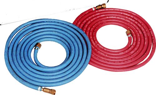 Oxy Acetylene Oxygen (blue) and acetylene (red). Kink/ crush resistant. 6 and 8mm (general use). 10mm (heavy duty/flame cutting). Supplied fully fitted complete with hose check