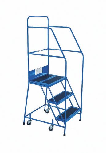 Utilising 19mm steel tube for a lighter step the 2 - 4 tread models use spring-loaded self-weight retractable castors; step onto the step and the rubber feet impact on the floor to immobilise the step to give maximum stability. The 5 - 6 models are fitted with a central braking system and fixed rear axle. These steps are ideally suited to light duty warehouse or office environments. Supplied in pacific blue as standard, signal red available if required. Price includes delivery (UK mainland).