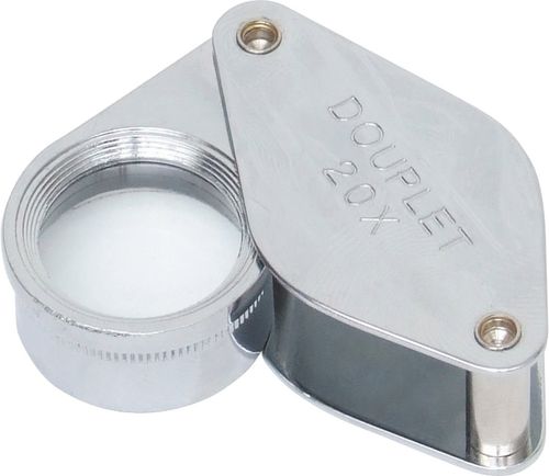 20x magnification, 21mm diameter double lenses bonded together to form one compound lens. Provides a sharp magnified image with virtually no distortion. Chrome plated finish with swing away handle. Suitable for precision engineers, instrument makers, watch repairers, jewellers etc.