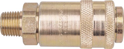 The 'Industry Standard' coupling. For use with air tools, garage, industrial air line supplies and test panels. Free air flow rate at 7bar/100PSI: 35 to 42 cfm (990 to 1130ltr/min). Zinc plated all steel construction, finished in hard wearing passivate. Stainless steel springs and balls. Positive single locking action prevents accidental dislocation. For fixed applications - for couplings for trailing hoses see 'Vertex' type below.