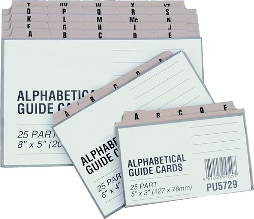 Strong manilla guide cards withstand constant daily use. Tabbed A - Z in 25 positions.