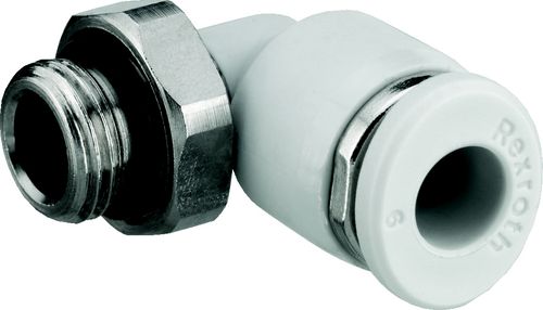 Standard Metric M5-G Elbow push fit pneumatic fitting for compressed air hoses: 4 to 16mm diameter.