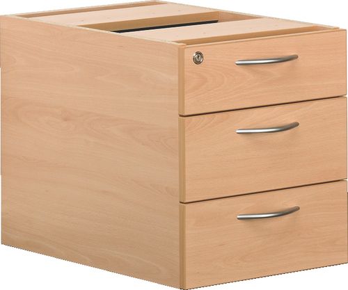 Pedestals can be fixed to the 800mm end of all the Satellite workstations. Silver finish handles with central locking. Available in beech, oak or maple finishes. N.B. Illustrated in beech.