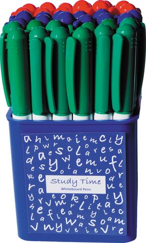 High quality pen size whiteboard markers with high bullet tips. Vivid colours and excellent erasability. Suitable for either personal or classroom work. Long lasting with a "write out" length of 200 metres. Supplied in a convenient tub which is ideal for clasrooms. Available in black only or assorted Red, Green & Blue.