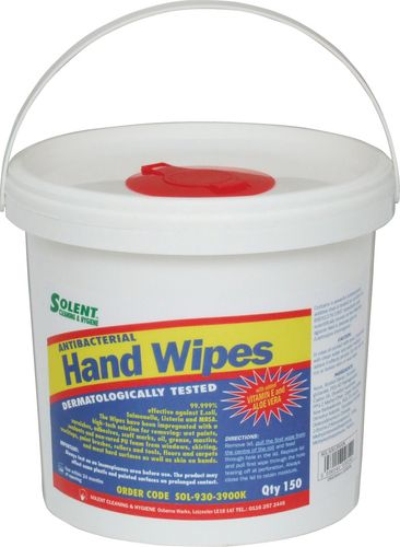 Solent Cleaning and Hygiene HWT150 Hand Wipes are dermatologically tested and supplied in mobile dispensing tubs of a 150 soft white wipes, allowing you to position them exactly where they are required. Solent wipes rapidly removes oil, grease, ink and general dirt. As they do not require water to rinse hands after cleaning they are ideal for mobile repair and maintenance vans and use around the workshop.