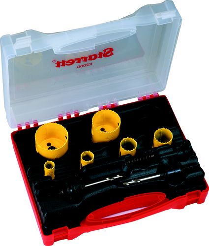 A comprehensive range of holesaw kits for cutting virtually any material. Made in Britain, each bi-metal hole saw kit comprises a selection of constant pitch hole saws and accessories. Designed for use in the electrical, plumbing, automotive and locksmith trades, and industry generally, Starrett bi-metal hole saws are durable and shatter resistant and ideal for cutting metal (including stainless steel), wood and plastic. Kits are supplied complete in an attractive, sturdy, carrying case.