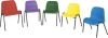 Tough, moulded, textured seat with black epoxy coated frame, suitable for both indoor and outdoor use. Easily stackable up to 10 high. Ideal for schools, canteens etc. Available in blue, yellow, red, green and purple. These chairs are available in five sizes to suit all age groups: 3 - 5 years, 5 - 7 years, 7 - 9 years, 9 - 13 years and 13 years - adult. Conforms to BS4875 for strength and stability.