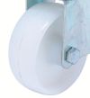 Suitable for use on hard floors (cement, tiles, etc). Non-marking rubber tyre. Quiet running with ?cushioned? tyre, suitable for humid environments where medium harsh chemicals may be present.